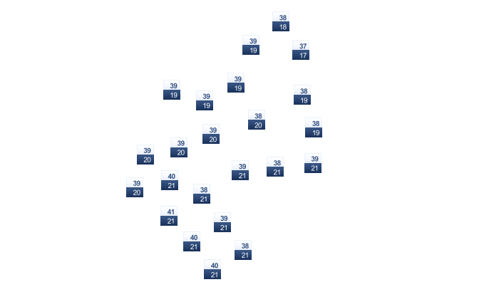 | 19 | 20 | 21 | 21 | 20 | 20 | 20 | 19 | 19 | 19 | 19 | 18 |