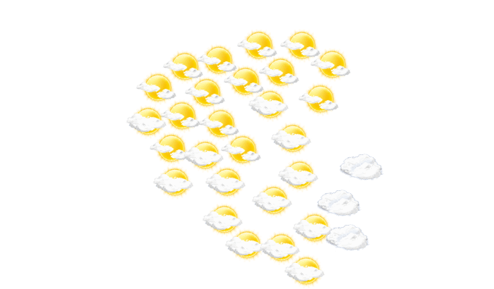 In Bé gibt es am Morgen ungestörten Sonnenschein bei Werten von 21°C. Gegen später kann sich die Sonne nicht durchsetzen und es ist wolkig und die Temperaturen erreichen 35°C. Am Abend überwiegt in Bé dichte Bewölkung aber es bleibt trocken und die Temperaturen liegen zwischen 27 und 28 Grad. Nachts ziehen Wolkenfelder durch bei Werten von 23°C.
