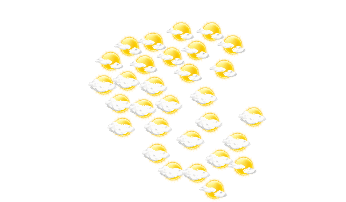 In Paoua scheint morgens die Sonne bei Temperaturen von 24°C. Im weiteren Verlauf des Tages gibt es mittags und auch abends nur selten Lücken in der Wolkendecke und die Temperaturen liegen zwischen 28 und 37 Grad. Nachts ziehen Wolkenfelder durch bei Tiefstwerten von 24°C.