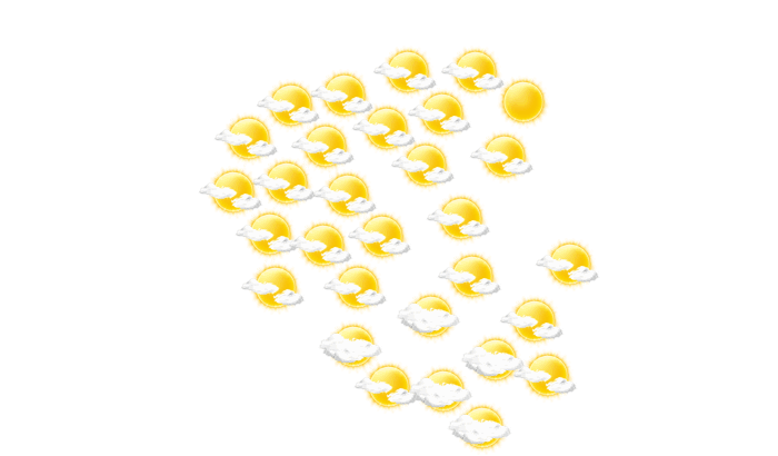 In Paoua gibt es morgens ungestörten Sonnenschein bei Temperaturen von 22°C. Im Laufe des Mittags gibt es eine Mischung aus Sonne und Wolken bei Höchstwerten von 37°C. Abends bleibt in Paoua die Wolkendecke geschlossen bei Temperaturen von 28 bis 30°C. In der Nacht ist ein Blick auf die Sterne nur vereinzelt bei sonst wolkigem Himmel möglich bei Tiefstwerten von 23°C.
