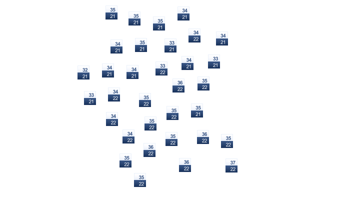| 19 | 20 | 21 | 21 | 20 | 20 | 20 | 19 | 19 | 19 | 19 | 18 |