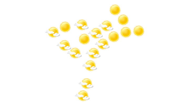In Bilolo scheint von Tagesbeginn bis zum Nachmittag die Sonne bei blauem Himmel bei Temperaturen von 19 bis 37°C. Am Abend ist es in Bilolo bewölkt bei Werten von 23 bis zu 26°C. In der Nacht bilden sich leichte Wolken bei Tiefstwerten von 19°C.