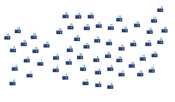 | 15 | 17 | 19 | 23 | 27 | 31 | 34 | 34 | 32 | 28 | 22 | 17 |